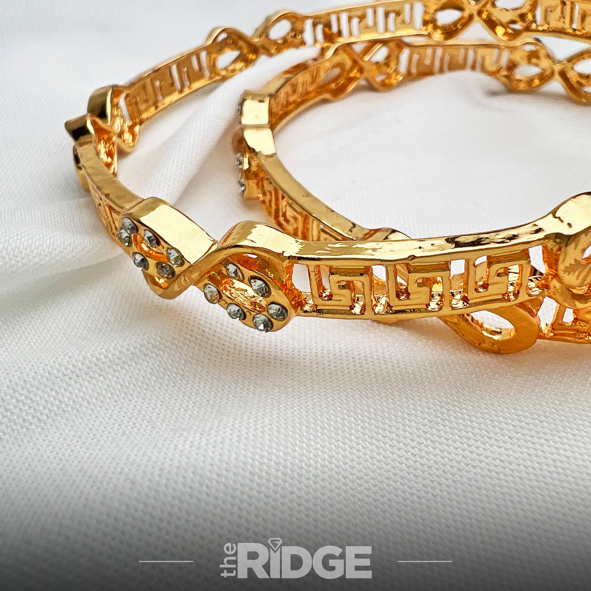 With their elegant bow-style curves and embedded florals, the Bow Bloom Bangles are feminine and festive. Wear them to complete your mehndi, dholki, or formal event look.