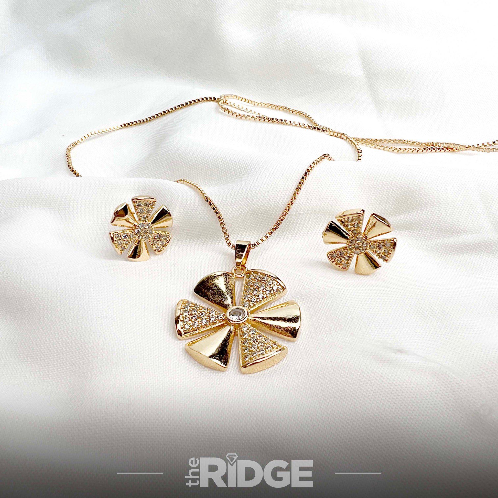 Flower Crystal Pendant Necklace & Earrings Set – Gold
