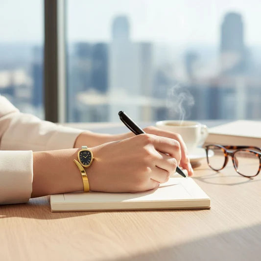 This chic Gold-Plated Watch Style Bangle Bracelet combines the elegance of jewelry with the charm of a timepiece-inspired design. Featuring a sleek black dial face with Roman numeral accents, it’s the perfect fashion accessory to add a touch of sophistication without being a functional watch.
