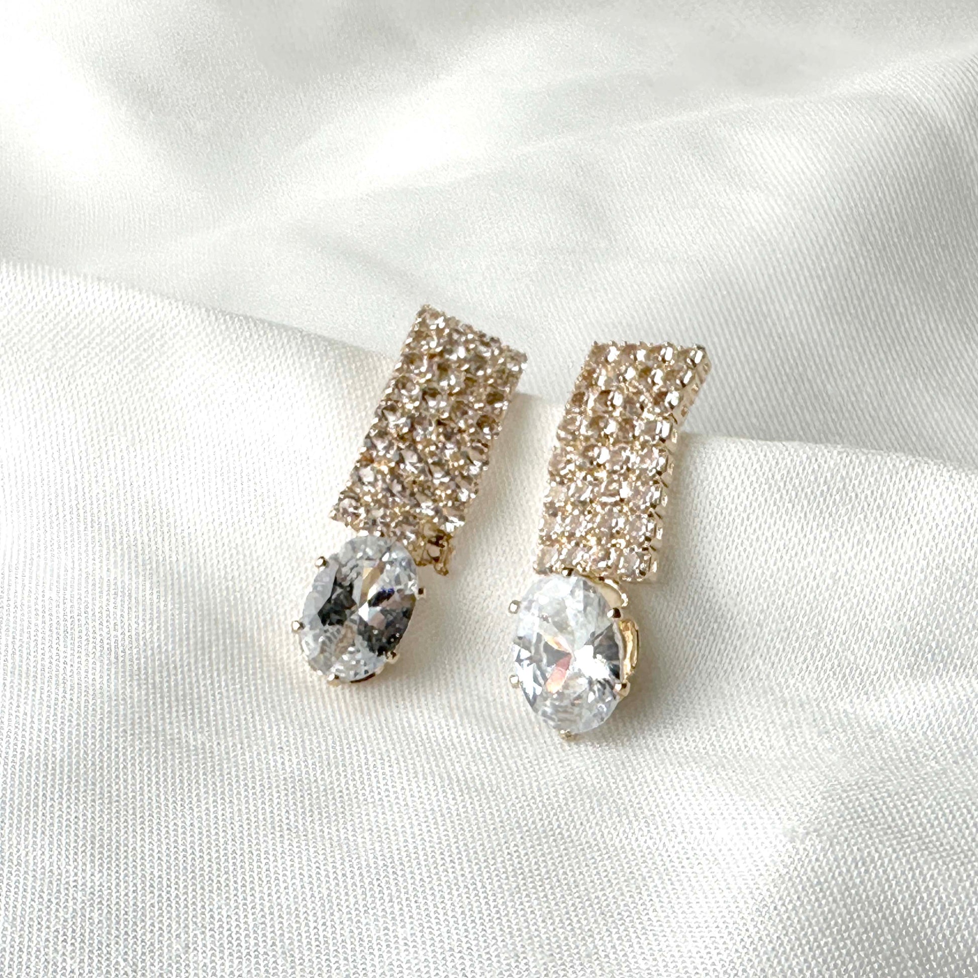 For a dazzling finish, the Sparkling Rectangle Crystal Earrings bring together the brilliance of rectangular crystals and a gold-plated frame. These chic earrings are perfect for those who love a contemporary twist to classic elegance.