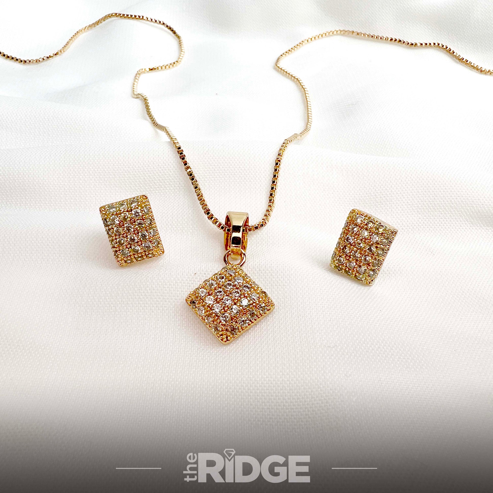 Square Pave Crystal Pendant & Earrings Set – Gold